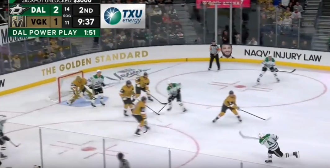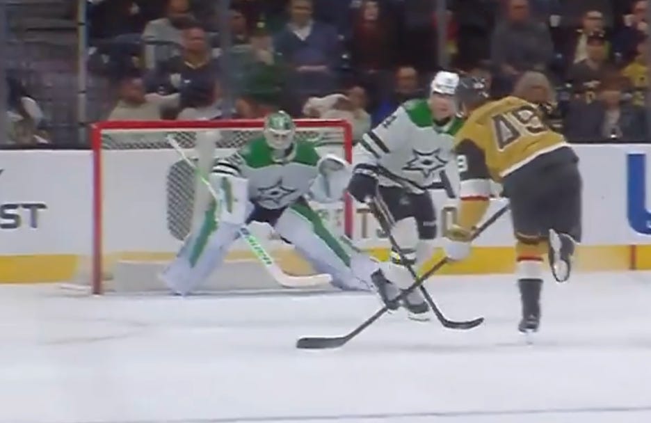 But a shorthanded Vegas goal was scored on another breakdown, when Jason Robertson (whom we’ll discuss below) turned over a puck in a terrible spot on the power play, leading to another shorthanded 2-on-1 rush. And you know the Stars’ elite power play is having a rough night when they give up these kinds of chances repeatedly.