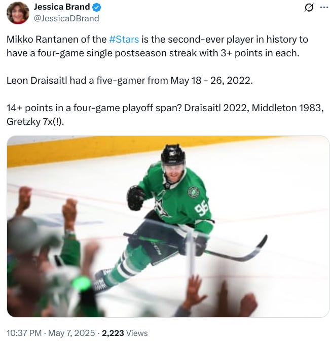 As for Rantanen, Stars fans have a lot to appreciate just eight games into this playoff run. It’s been a glorious buffet for hockey gluttons to gorge themselves upon, his last few games. But if you’ve managed to moderate your appetite, here’s a respectable sampling of some of the records he’s shattered over his recent stretch: