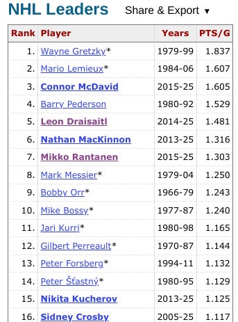 Now, Rantanen has 116 points in 89 playoff games: an average of 1.30 points per game. In the playoffs. He is, quite literally, one of the best playoff hockey players in NHL history.