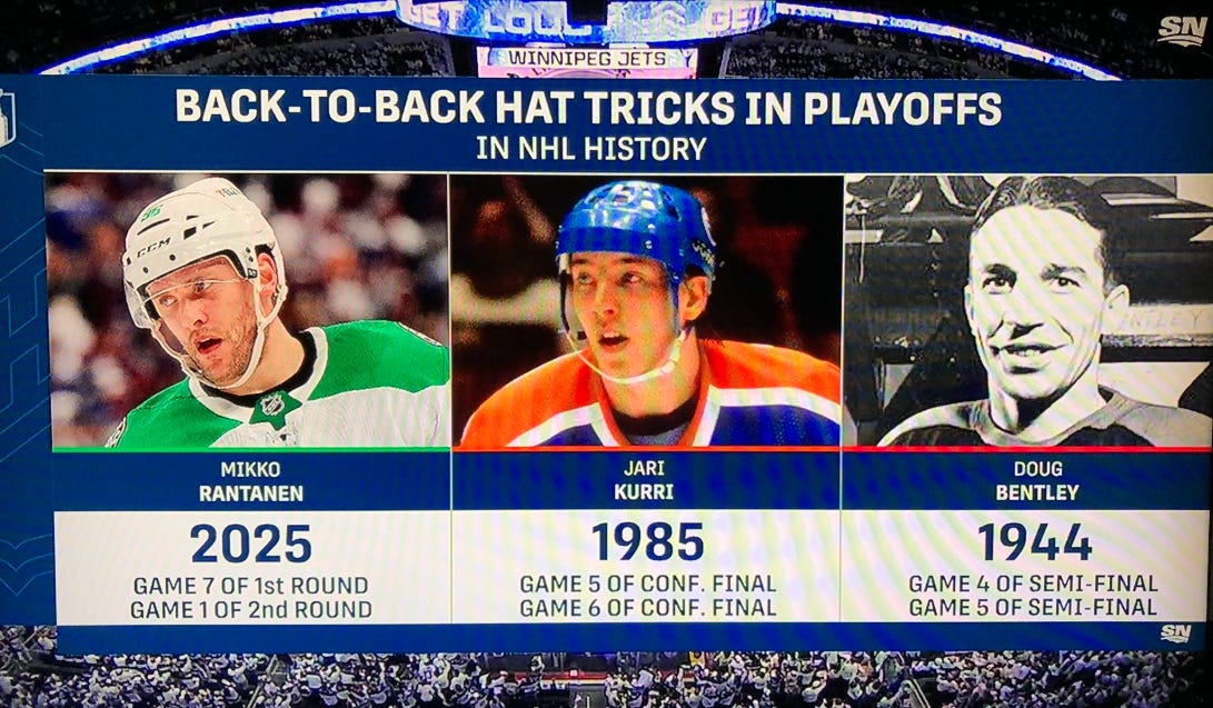 Rantanen is one of only three players to record back-to-back hat tricks in the playoffs. The others? Jari Kurri and Doug Bentley.