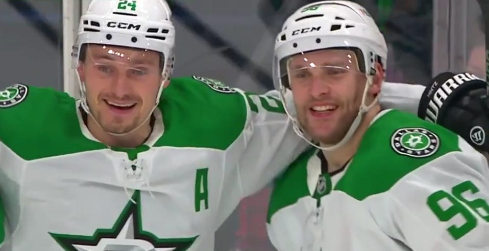 Mikko Rantanen had just one assist in his first four games. The next four games have gone differently: 8 goals and 6 assists for 14 points in four games. I think lots of Stars fans probably heard that “MacKinnon Merchant” slander from Colorado after the Stars got Rantanen, but I don’t know any of them expected to see Rantanen basically dispel every shred of doubt like this.