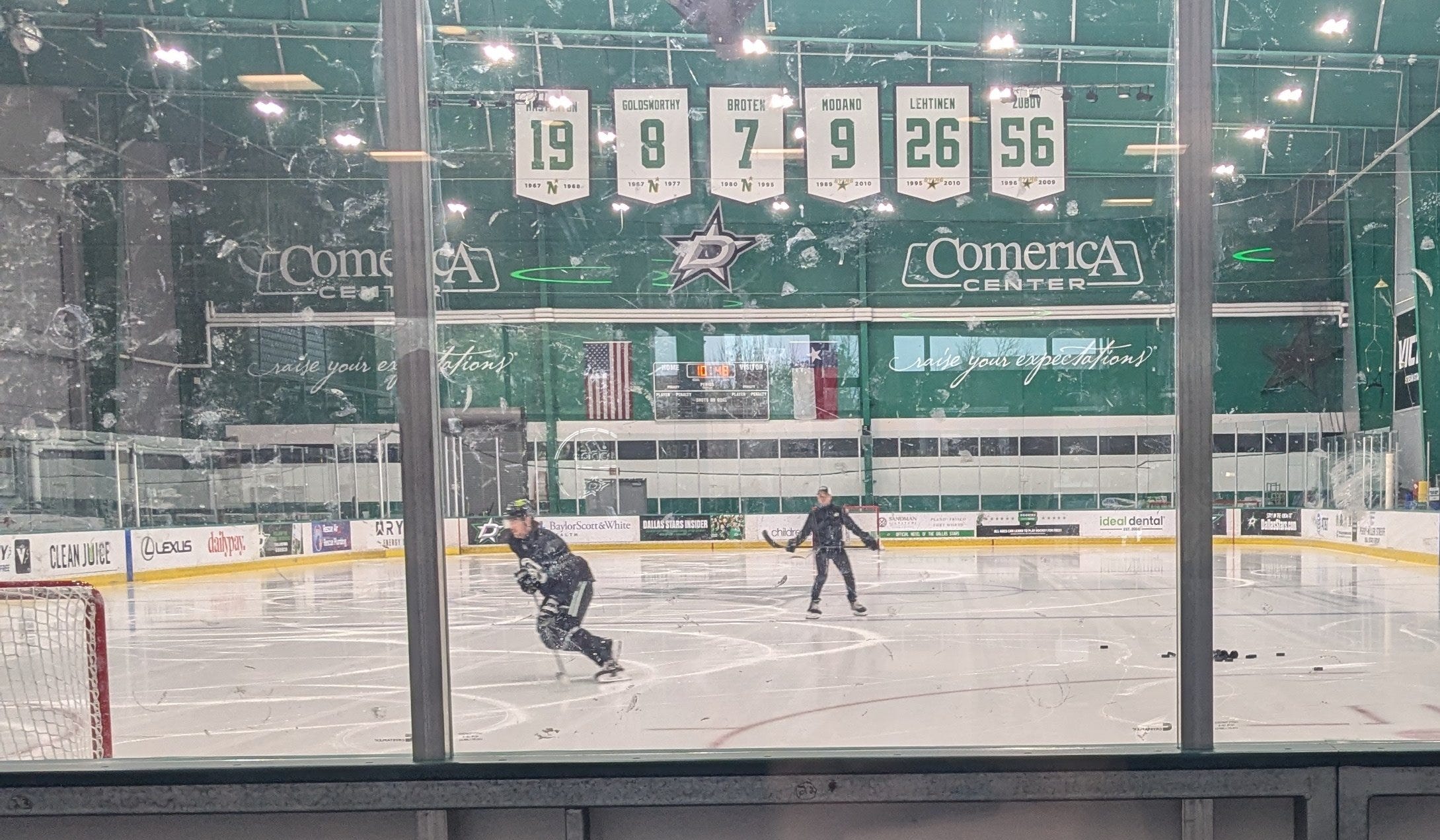 The Stars changed this morning’s scheduled practice to an optional affair today, and that meant all of four players on the ice: Lian Bichsel, Colin Blackwell, Jason Robertson, and Casey DeSmith.