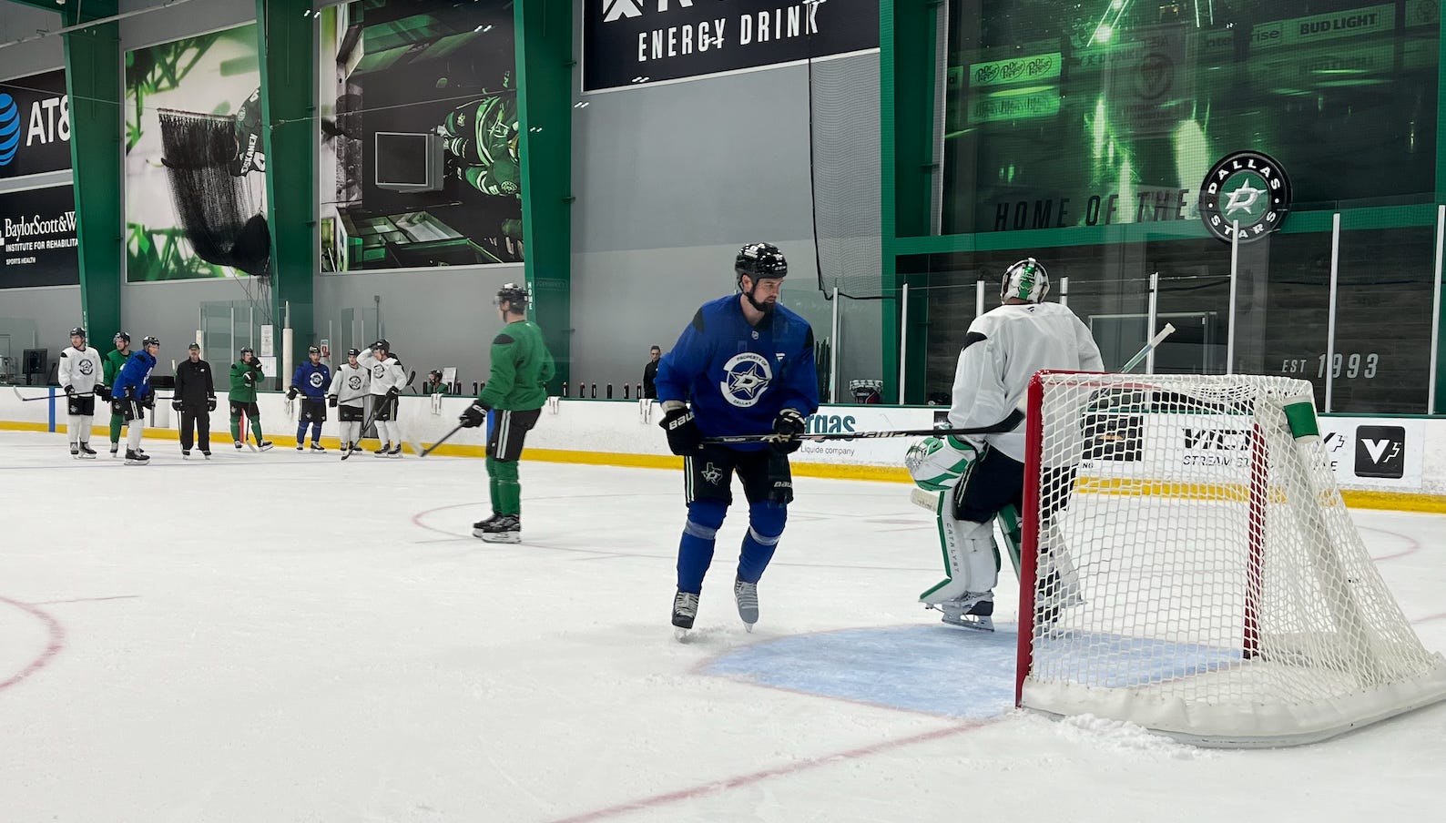As usually happens in the second week of an NHL training camp, the first round of re-assignments happened, reducing the Stars’ practice groups from three to two.