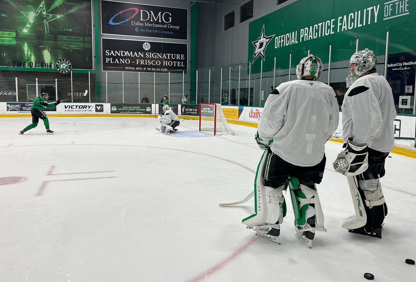 The Stars spent a good amount of time working on power play things today, and the most noticeable thing was that Thomas Harley was working with Rantanen, Robertson, Johnston, and Hintz on the presumptive first unit. Heiskanen worked with Duchene, Seguin, Benn, and Mavrik Bourque on the second unit.