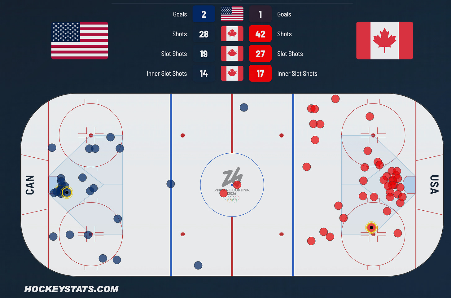 Canada kept the pedal to the metal however, and the USA ought to have taken a Too Many Men on the Ice penalty in the midst of the push. But instead, it would be Canada heading to the box a couple minutes later.