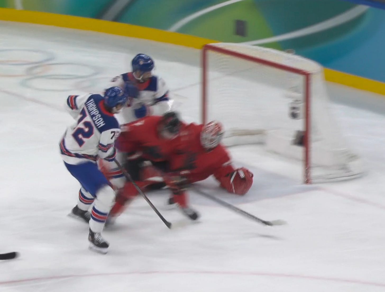 The USA got one good chance when a rebound fell to Tage Thompson with Binnington sprawling, but the puck didn’t get through.