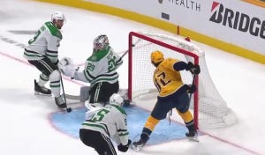 Filip Forsberg hit the corner of the crossbar from distance with a puck up on edge early in the game, and that should’ve been the “wakey wakey!” moment for Dallas. Portents, they are all around us.