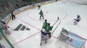 On the positive side of the ledger, you have Tyler Seguin continuing to step up when needed, particularly with a really late goal to force overtime. Then you have Jake Oettinger, who made some incredible stops, but none more absurd than this: