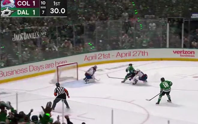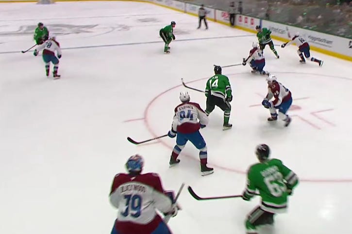 Rantanen would hit the post from the circle through a screen, but nothing came of it. The second unit came out with 40 seconds to go, but after an Avalanche forward fell on the entry, and Jamie Benn just kept carrying the puck unimpeded until he got to the net.