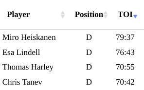 I think you might genuinely have to consider swapping Dadonov with Pavelski for the next game, just to give the Johnston-Benn pairing a speedier option on the wing. But I can’t really see Pavelski playing with Smith and Steel, so you’re at a bit of an impasse with Seguin looking great next to Marchment and Duchene. Again, these are good problems to have, but that doesn’t mean that they aren’t still problems.