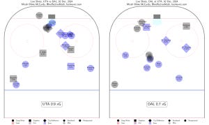 The headlock/takedown/suplex was whistled for two minutes, and the Stars finally got a power play, for real life. They would take advantage of it, or at least they would take advantage of the Utah Hockey Club’s goaltender.