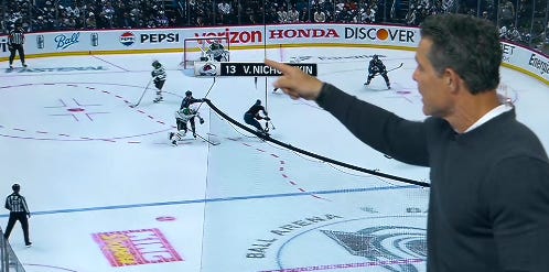 MacKinnon tried to plead his case to the officials—not sure why he’d think that would work—but he sat all the same, and Dallas’s second kick at the can would end up landing square on MacKinnon’s backside.