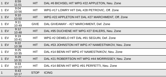 But the most important stat might be that Dallas’s power play has scored in every game other than their two shutout losses. It’s been consistently dangerous in almost every game, and tonight, it gave them a rare (lately) 1-0 lead. That matters. But man, they need to stop asking their penalty kill to take care of twice as many jobs as the power play does. That’s a great way to let teams get back in games you ought to be winning.