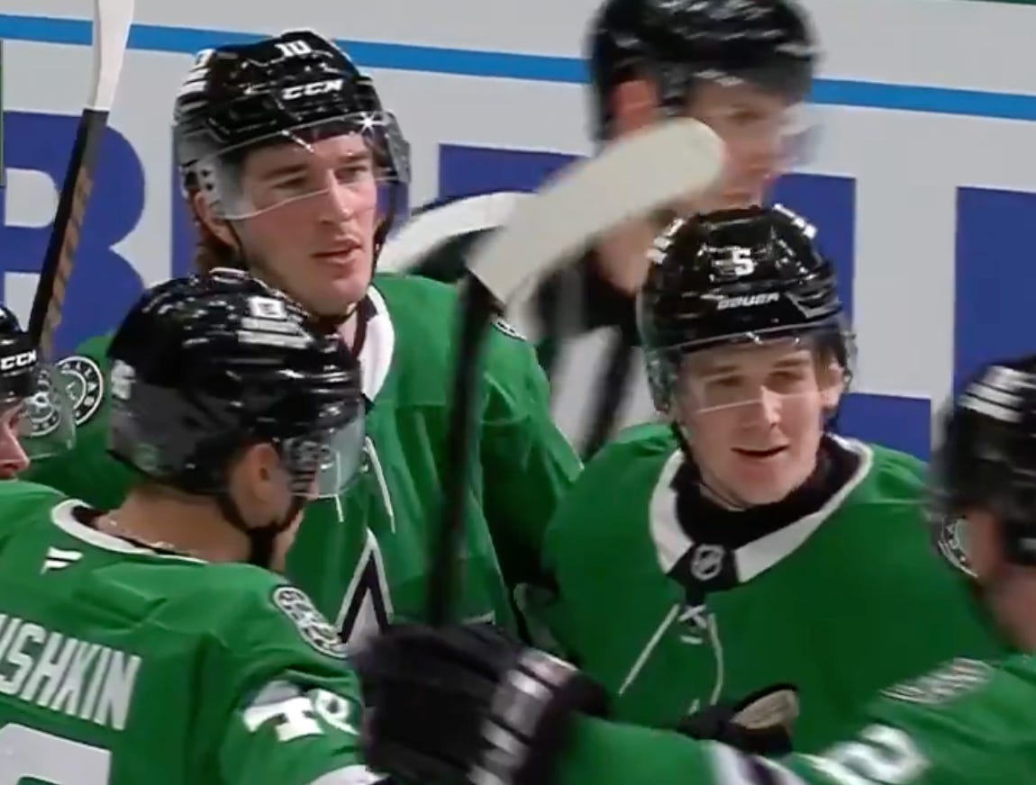 So for the tide to really start turning because of a one-timer from Radek Faksa that gets tipped in by Oskar Bäck, of all people? That’s a moment you remember, and one you build off of, and the Stars ended up doing so, with both a highlight-reel goal by Mikko Rantanen (and he set up Duchene with a highlight-reel pass in the second) and an empty-net tally from Wyatt Johnston.