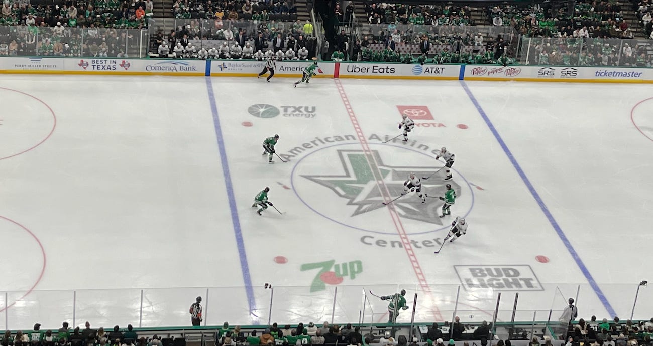 After the Stars elected not to risk compounding their misfortune (no irony intended toward Jim Hiller here), the Kings would draw the first power play of the game just before the intermission with a strong shift against the Stars’ third D-pair and fourth line, after which Bäck was tagged for interference.