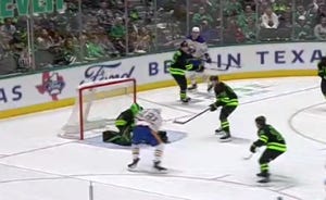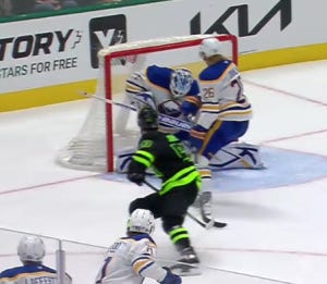 Alex Tuch just fanned on a back-door tap-in after the Stars fumbled up a defensive coverage exchange to allow a cross-crease pass. Shots on goal are 18-10 to Dallas, and we have seen this movie before.