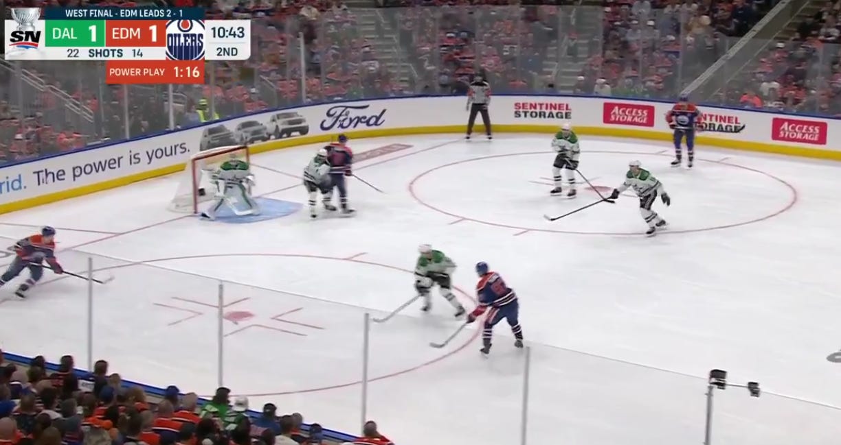 So, that was the game-winner, a dagger of a goal just a couple minutes after the Robertson shot tied it up. It’s a lot of little things, but the foundation of it all is that Draisaitl missile that lives in the Stars’ penalty kill’s head, I think. They didn’t want to get beaten by it twice, and so Lindell, of all people, probably gets caught a bit too far away from the net, which is an uncharacteristic thing, for him. This series has been uncharacteristic for most of the Stars’ team, if you discount the fact that we saw this same offensive disappearance last year.