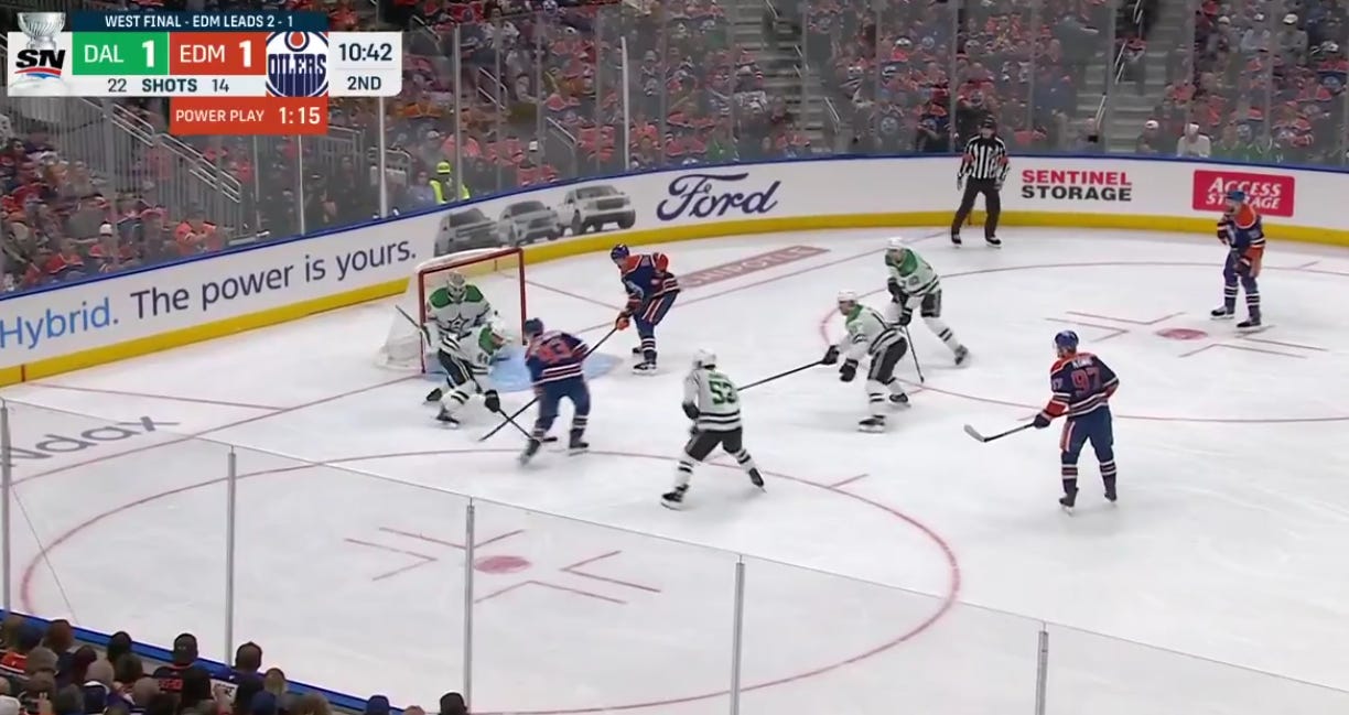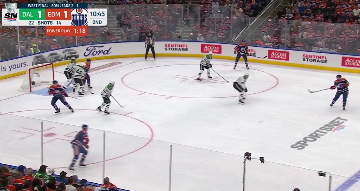 So instead, you see what you saw last night: hopeful plays, pucks trapped along the boards, one-and-done shots, and an increasingly impenetrable Edmonton blue line. Dallas had 16 shots on goal in the first period, then nine in the second, and only four in the last and most critical period of their season to date.