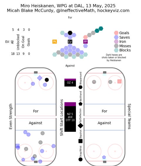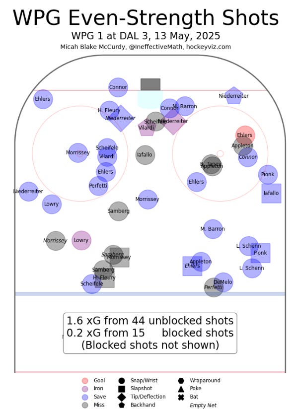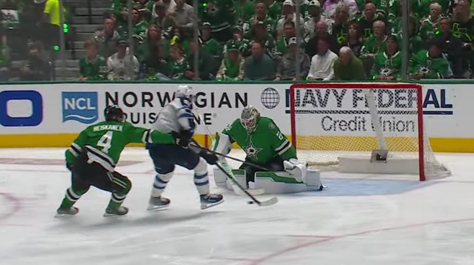 Which is also to say, Dallas’s penalty kill has been good. Now, they saw two posts get hit last night, but Oettinger had some decent help while also coming up with at least two massive saves. The PK hasn’t been as stifling as it was against Colorado, but Winnipeg’s power play is looking much weaker through four games than it did after two, and that’s a big success for Alain Nasreddine’s crew.