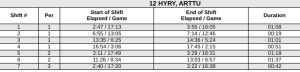 Speaking of ice time, I would be remiss if I didn’t point out that Arttu Hyry only had seven total shifts tonight, including just two in the second and one in the third period. But I think the reason for that may have been twofold: First, because it was a tight game and the Stars shortened the benches a bit, but two, because Hyry was staying out way too long (or getting caught out). Hyry had the longest average shift-length of any Dallas Stars player tonight, with four of his seven shifts coming in at over a minute long. That’s not the assignment for fourth-line forwards, and I think that 1:37 shift in the second period might have sealed his fate tonight:
