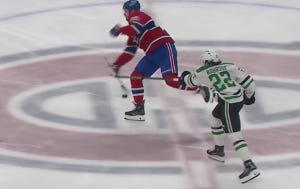 Things began to go awry late in the second, when Matt Dumba took his third straight penalty for Dallas (going back to last game) on a cross check that sent Brendan Gallagher to a knee. And that wouldn’t likely have been a problem for the Stars’ excellent penalty kill, but Cole Caufield did a great job of taking advantage of some poor stick positioning by Colin Blackwell in the neutral zone, and the officials bought what Caufield sold, sending Montreal to a 5-on-3 opportunity. Both penalties were ones that aren’t always called, but it was foolhardy to take the risk to begin with, and neither was really a surprising call, even if you quibble with the particulars.
