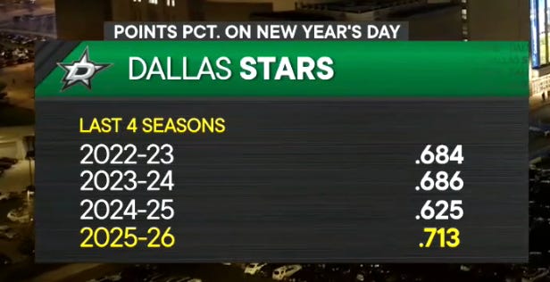 Yes, it was a power play goal for an opponent, but with Esa Lindell in the box, it was really more like a 5-on-3 goal, if you think about it. Just some of that fresh 2026 Math for all the folks out there.