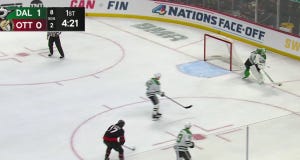 The second goal came just half a minute later. As Josh pointed out on the broadcast, it was an eerily replica of what had happened in Dallas last week in the teams’ previous matchup, with a 1-0 lead turning into a 2-1 deficit in the blink of an eye. It started with a neutral zone turnover by Esa Lindell off an attempted stretch pass, and it was clear that every Senators player had been told to join every rush, even if they happened to be at the snack bar.
