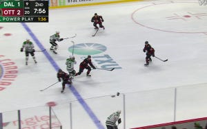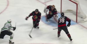Dallas drew another play during that push with some hard forechecking in hopes of erasing the painful memory of the previous recall, but they couldn’t generate anything like the look they did for the previous goal, no-goal, and the Senators got their lead to the dressing room after 40 minutes.