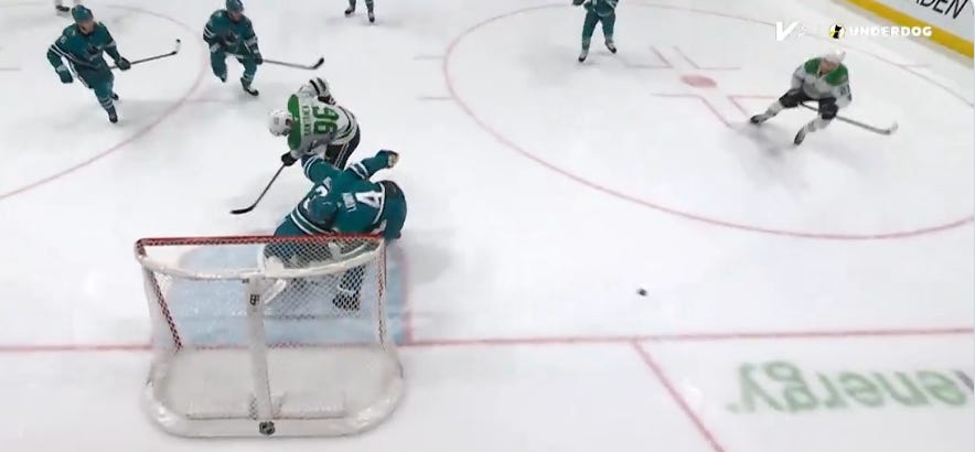 As for San Jose, the only goals they’d scored to that point had come on the power play, and that remained true even after a pretty questionable hooking call on Lyubushkin to give them their fifth chance of the game. And once again, the Sharks would make Dallas pay, as Tyler Toffoli pulled off a move he has done on a few different teams over the years, catching a puck with time and space on the doorstep before pulling a backhand up and over DeSmith’s outstretched pads to make it 4-3 with time left.