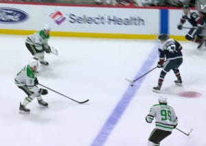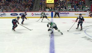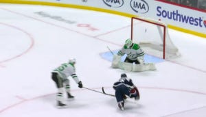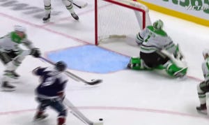 The puck may have ticked off Dumba on its way past DeSmith’s glove, but either way, that’s a goal none of the six Stars on the ice will be proud of, as Colorado rapidly countered in transition and got a wicked shot off that you’d probably prefer to snuff out altogether.