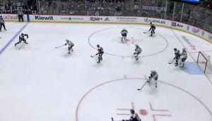 Shots got to 13-1 before Dallas got another shot on goal, and the Stars would draw another penalty right afterwards, as Logan Stankoven got hooked by Parker Kelly out of necessity when a Jamie Benn saucer pass nearly sent Stankoven into the slot all alone.
