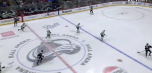 It was a tough break for Dallas on a failed zone entry, when Evgenii Dadonov had his pass/dump-in blocked along the boards, wrong-footing the Stars. The Avalanche were changing, and Lehkonen simply hopped on during the Dadonov entry attempt, traversed the far blue line, and got behind a pretty tired Harley and Heiskanen, who couldn’t recover after the puck got turned over and fed ahead: