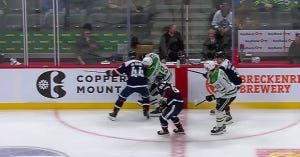 Justin Hryckowian took a heavy hit along the wall from de Haan midway through the first that looked for all the world like a check to the head. You know, they should come up with a penalty for those.