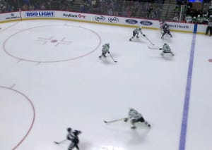 I’m not gonna be too hard on anyone here, but I do think you have to acknowledge that both defensemen can’t get sucked this far away from the middle of the ice on the entry.
