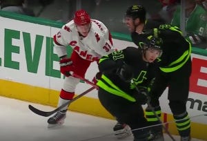 At morning skate, Pete DeBoer mentioned that he’s liked Wyatt Johnston “back in the middle of the ice” at center in Hintz’s absence, so it wasn’t altogether surprising to see Johnston sticking in the top-line center spot for now, with Roope Hintz returning to the lineup on the third line. Whether this is a bit of a playoff preview in terms of where DeBoer sees Johnston playing is still hard to say, but I think one thing that isn’t hard to say is that DeBoer is a big fan of Wyatt Johnston—particularly at center.