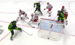 Lundkvist then got another chance after outworking his man and getting the puck back in hopes of sending the puck out along the boards, only to get stick-checked at the last minute by Martin Nečas, who then fed the puck over to an open Kotkaniemi before Smith could get over there.