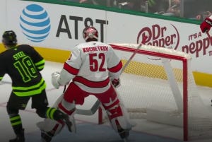 Logan Stankoven got a couple more chances of his own after some great passing from Roope Hintz in the offensive zone, but that curse was stronger than anyone suspected, and Kochetkov’s dribbler of a glove save was just enough to get the puck out of danger before another one-timer tested him again.