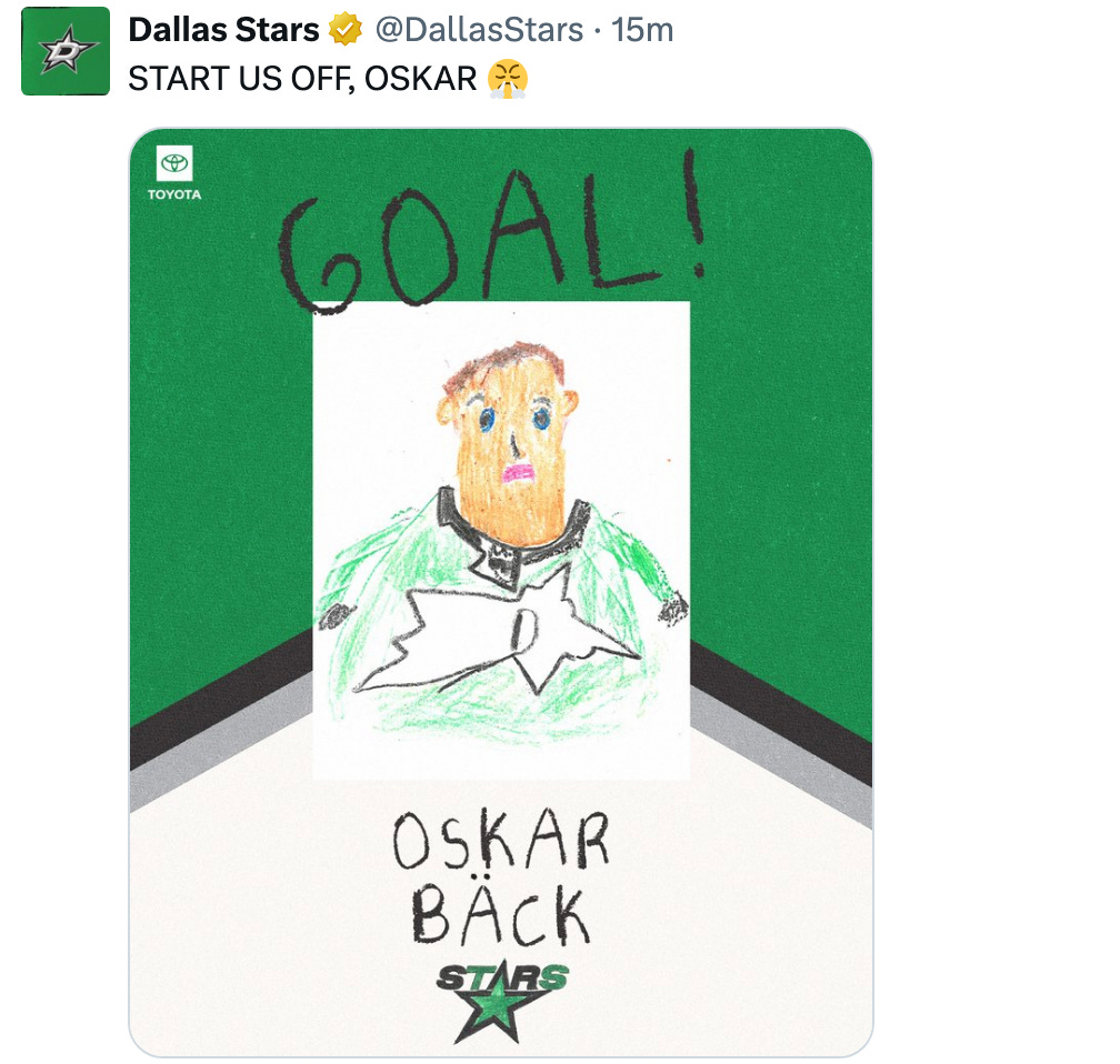 Also, if you play wing, please send your CV to the Dallas Stars ASAP.