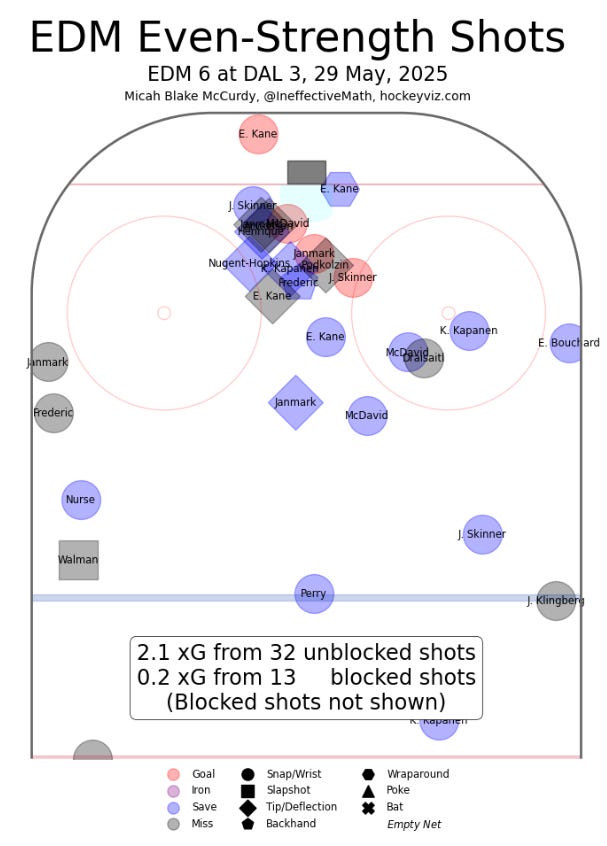 In five games against Edmonton, the Oilers scored 13 goals at 5-on-5. The Stars scored just five goals at 5-on-5: three by Jason Robertson, and two by Tyler Seguin (both of which came in Game 1).
