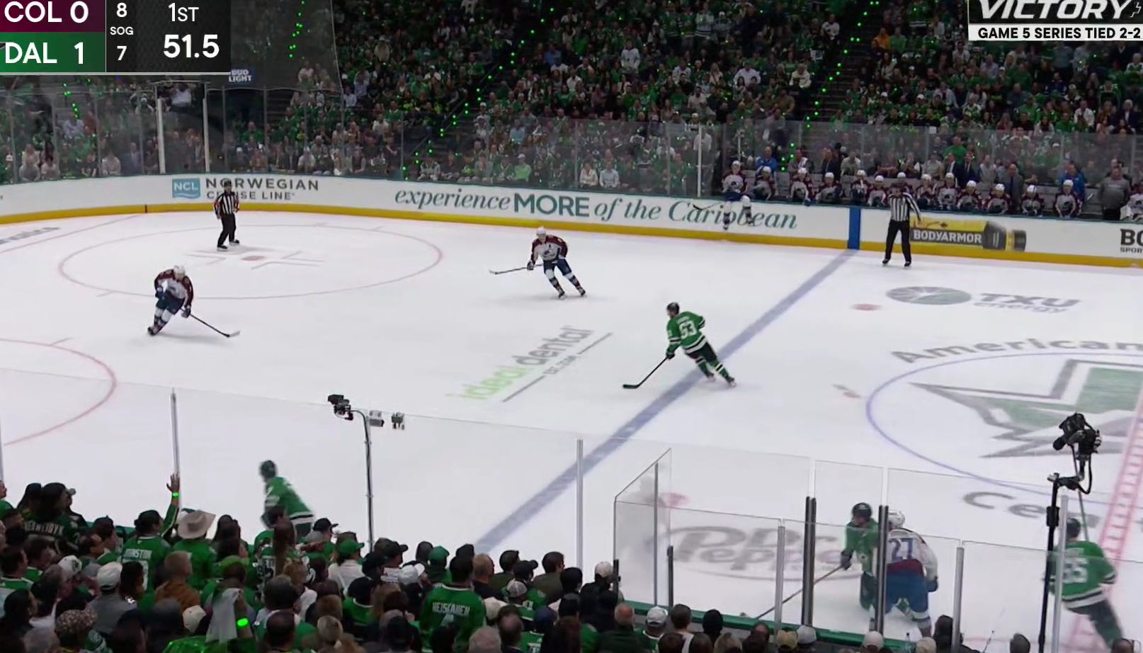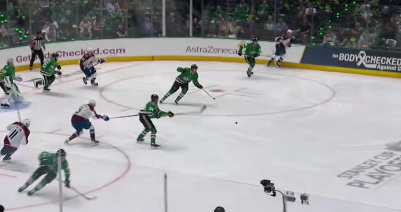 Despite some great puck movement from (primarily) the second unit, Dallas came away empty-handed. And a Roope Hintz interference call gave Colorado a chance to take advantage of the missed opportunity right afterward.
