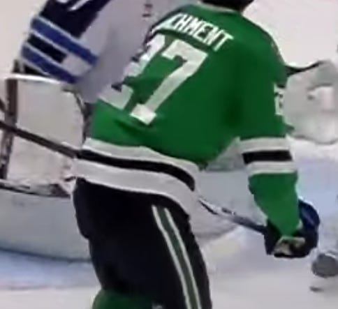Colorado pushed back though, as you’d expect. Oettinger saw one puck deflect off the outside of his near post after (I think) getting a piece of him as well, and Colorado had a couple of heavy shfits that saw Dallas just barely clearing and changing before having to do it again.
