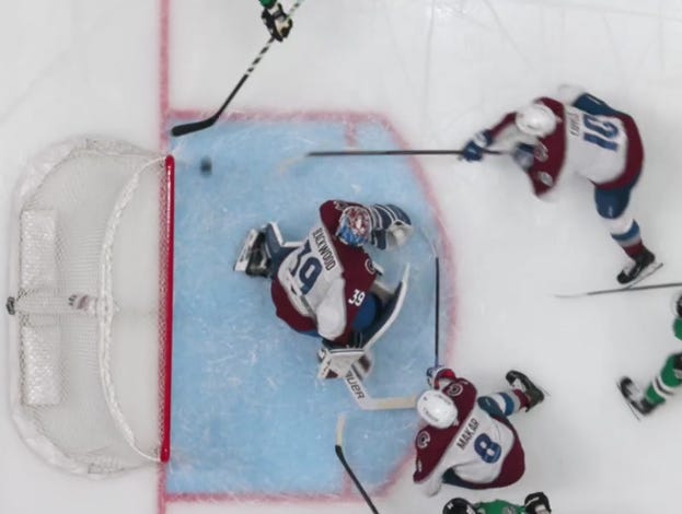 Colorado kept the pace high, too, and they made Dallas pay when Martin Nečas found Artturi Lehkonen open on the doorstep for an easy tip up past Oettinger to make it 3-1.