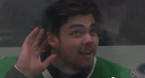 What really embodied this game was Cody Ceci, on the penalty kill, making a one-legged block after losing a skate blade on the penalty kill. Oettinger dove out to grab the puck and freeze play, and the crowd couldn’t have been happier to recognize the team’s effort. The Stars’ penalty kill was great all night.