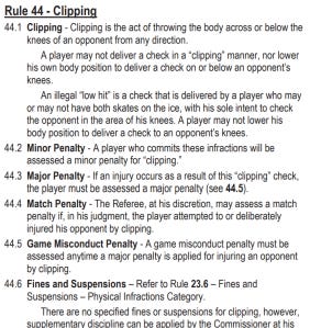 Clipping is a rare penalty, but it exists for a reason. There’s a video explanation from the NHL, too. Watch that and tell me how, in all honesty, this play didn’t qualify. Or even watch an older Player Safety clip below.