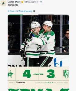 Obviously Miro Heiskanen’s health is the top concern after this one, but winning a game like this, considering all of the adversity the Stars have experienced against this team in the past, and in this game in particular, was huge.
