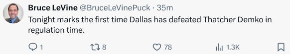 Jake Oettinger was also very good for the first 57 minutes tonight, and that’s all we really need to worry about, agreed? Agreed.