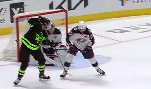 In this case, the right place was, as it always is, Wyatt Johnston’s stick. Johnston perfectly tipped the puck past Merzlikins’s left shoulder like he was winning a prize at a carnival, and it was even-steven once again.