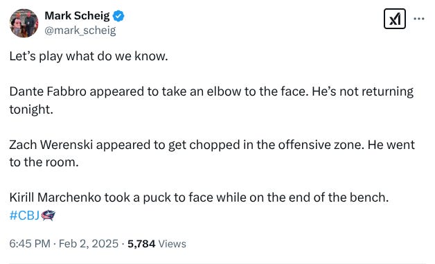 In this game, that was especially crucial, as the Blue Jackets lost two players, and nearly lost Werenski as well, though he would return to gut out the third period.