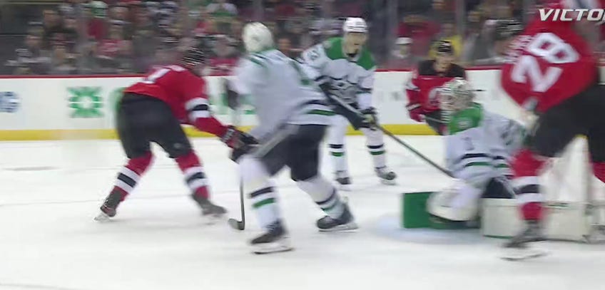 New Jersey promptly generated a better chance in the first five seconds of the kill when the Stars got caught leaning north off the face-off, only for the puck to go to Dougie Hamilton, who came down from a entirely empty point and fired a shot that just did catch the tip of DeSmith’s glove.