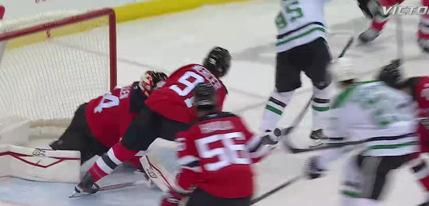 For much of the season, Dallas was winning games behind very good goaltending and even-strength play, out-chancing teams and not losing the specials teams battle. Tonight was a prime example of that, except New Jersey solidly out-chanced Dallas. Only it didn’t end up mattering, thanks to DeSmith.